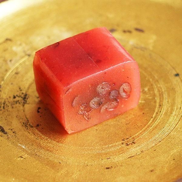 あっさりと炊き上げた白小豆の羊羹を紅色に染め、