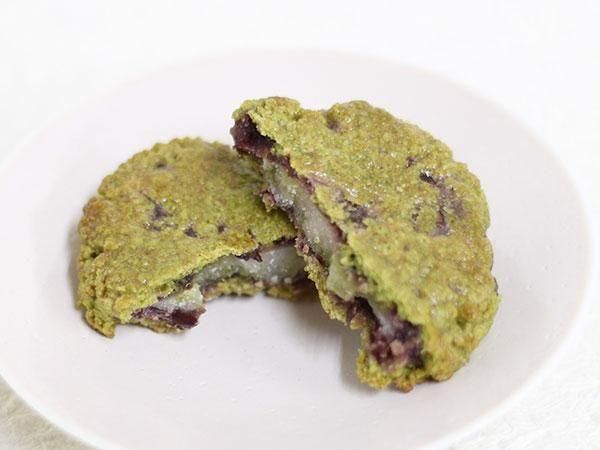 白餡を粒餡で包み、香り豊かな抹茶を使用したそぼろ状の生地をつけて香ばしく焼き上げた京菓子風の月餅。