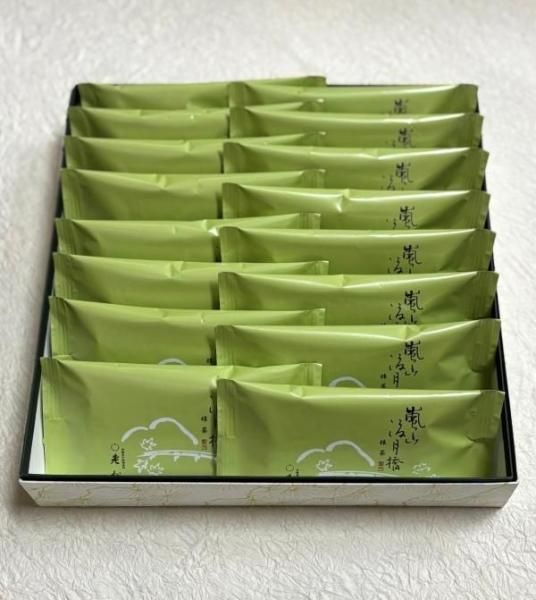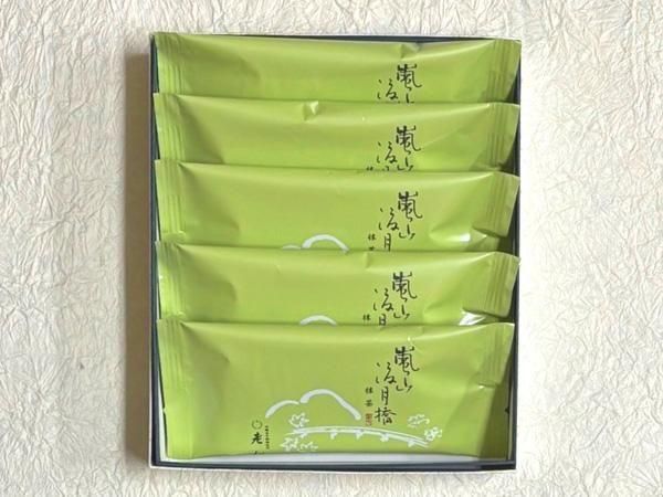嵐山の桂川に架かる渡月橋にちなんだ、抹茶クリームクリームをはさんだサブレー。